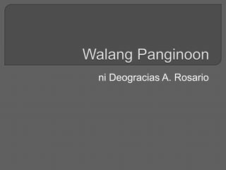 Teacher I at DepEdMaligaya High School Banghay walang panginoon 1. ROSARIO Si Deogracias A. Isiniksik niya ang kanyang ulo kahit saan.