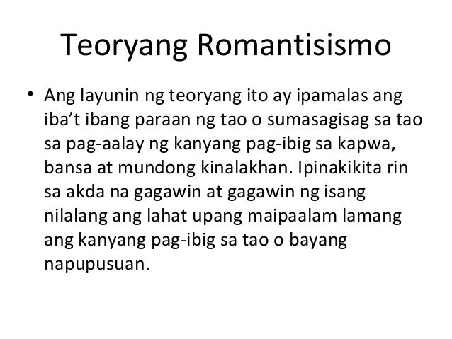 Ang teoryang Romantisismo ay nagpapahalaga sa damdming nakapaloob sa akda. Umusbong ang Romantisismo sa Europa noong. TEORYANG ROMANTISISMO Ang Romantisismo ay nagpapamalas ng.