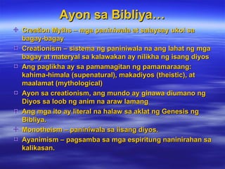 Ayon sa kanya ang araw ng paglikha ay naganap. Mga teorya ng pinagmulan ng mundo. Ebolusyon ng Tao Ebolusyon ng kulturang tao at Pag usbong ng mga kabihasnan.