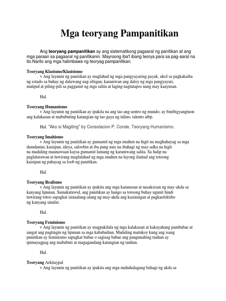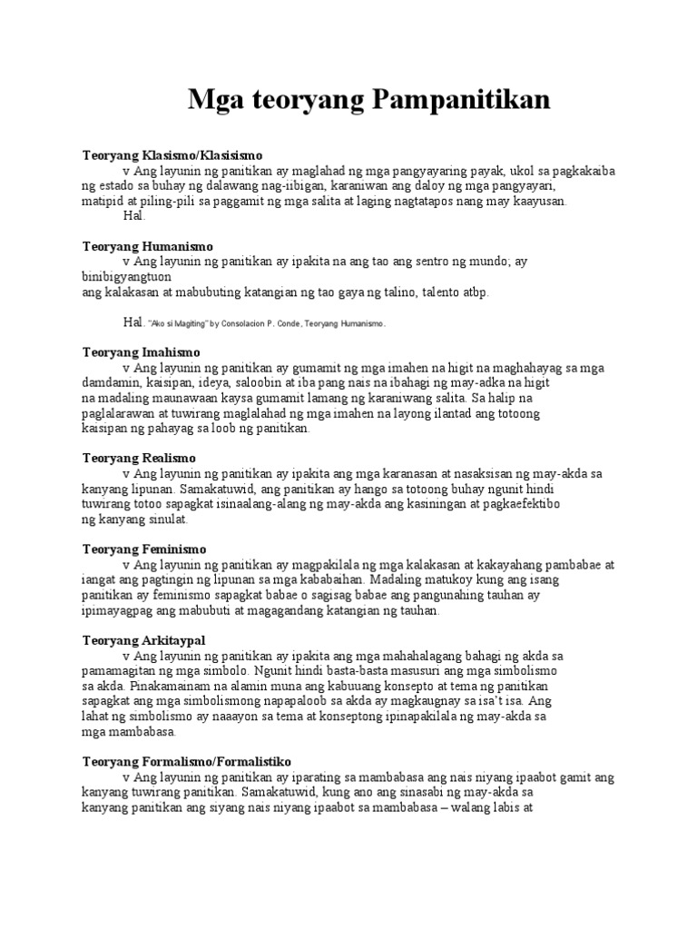 Ang teoriyang pampanitikan ay ang sistematikong pag-aaral ng panitikan at ang mga paraan sa pagaaral ng panitikanMayroong ibat ibang teorya para sa pag-aaral na ito. 1 bakit mahalagang pag-aralan ang bisa at teoryang pampanitikan sa filipino a mahalagang pag-aralan angbisa at teoryang pampanitikan dahil ito ay sumasalamin sa saloobin kaisip andamdaminprinsipyoideolohiya ng tao o ng may akda sa likod ng panitikan mas maiintindihan natin ang mensahe na gusting iparating ng may akda base sa kapiligiran. Kahit sino ano mang bagay at lipunan ay dapat makatotohanan ang paglalarawan o paglalahad.