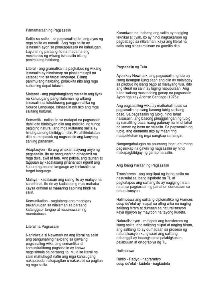 1 Pagsasaling Salita-sa-Salita One-on-one Translation Tinatawag din itong literang na salin. Zdalo sa že táto teória vysvetľuje pohyb planét. Ng pagsasalin mga salik sa pagsasalin machine translation sa Filipino This is the time to translate to join various efforts to actively translate technical or literary.