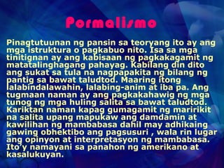 Pormalismo Pinagtutuunan ng pansin sa teoryang ito ay ang mga istruktura o pagkabuo nito. General Theory of Relativity. Humanismo Ilarawan ang ibat ibang teorya sa pagtuturo ng Filipino at ibahagi sa klase.