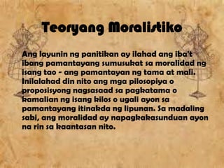 Realismong pilosopiko Ito ay isang makatuwirang pag-iisip ng isang tao na tinukoy ng pilosopiko realismo. Ano ang ibig sabihin ng teoryang collision. Ang teoryang feminismo ay prinsipyo o paniniwalang dapat maging pantay ang mga babae at mga lalake sa pagtatamasa ng mga karapatang sosyal ekonomiko at political.