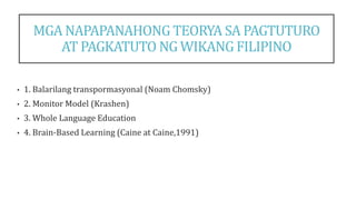 Mga Teorya Sa Pagkatuturo At Pagkatuto Ng Wika Sa Filipino