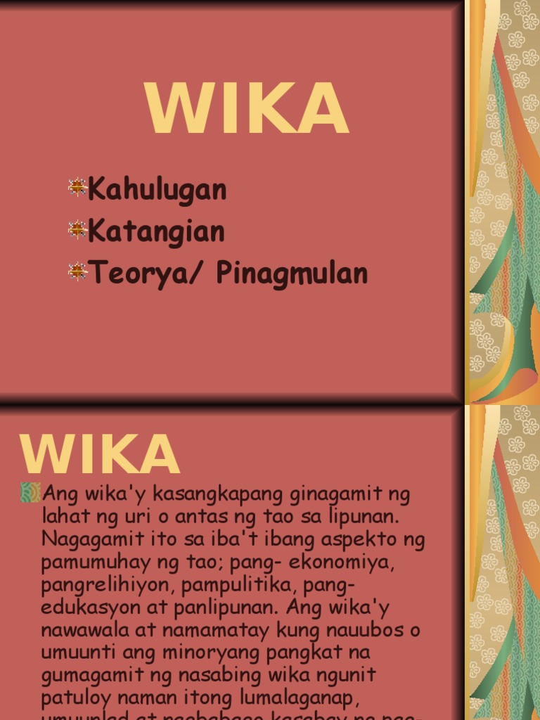 Wika - katuturan kahalagahan katangian antas at teorya Wika G.